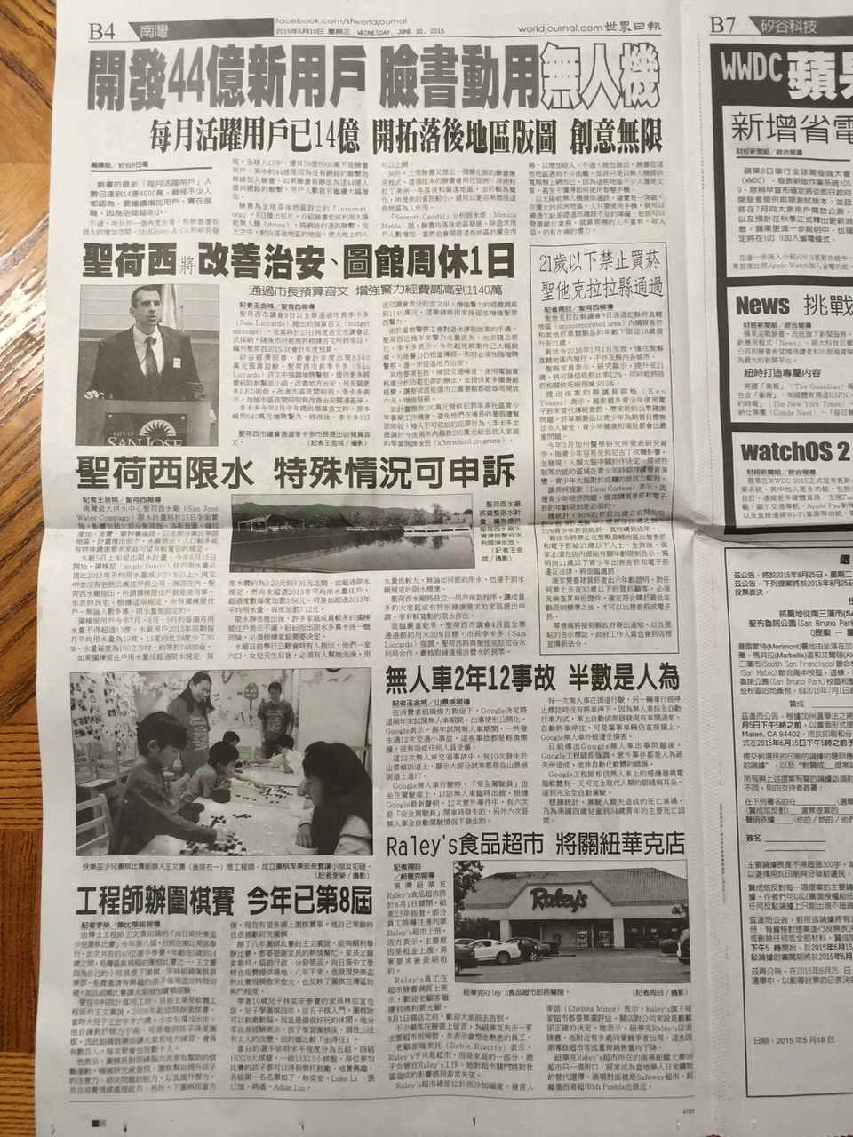 On June 10, 2015, World Journal page B8 published a